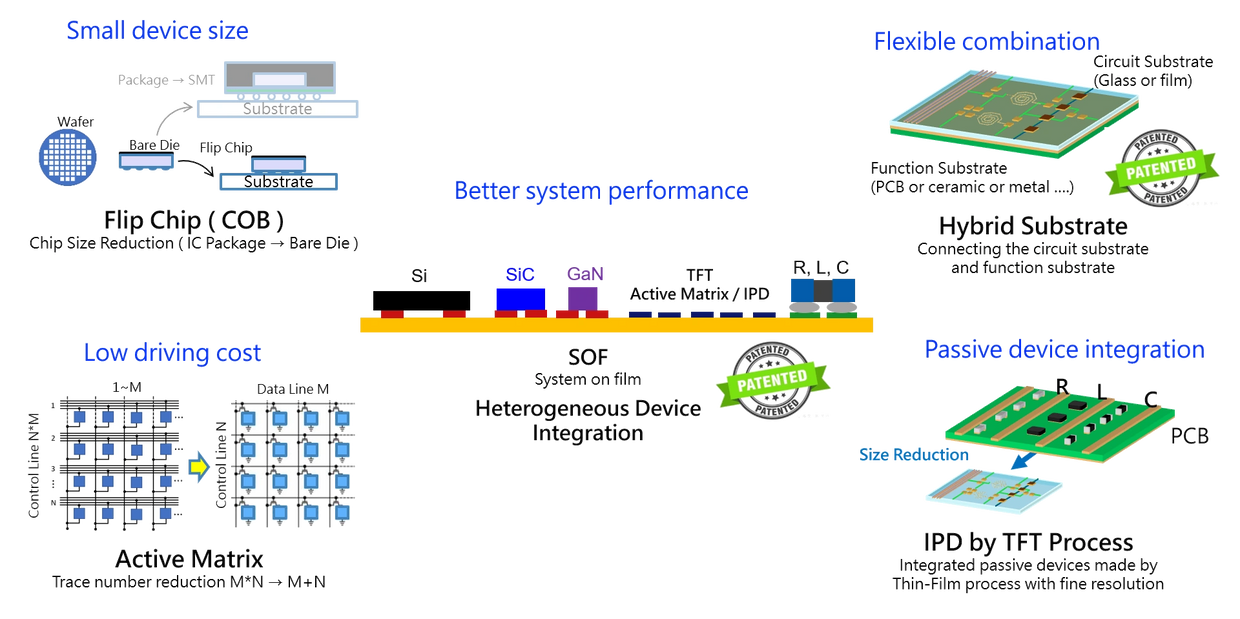 HBS (Hybrid Substrate) is a multifunctional substrate that integrates thin film (TF) and packaging level processes (PLP) onto a function substrate (BT, ABF, Ceramic…). It can directly bond the top chip to HBS, simplifying the process.